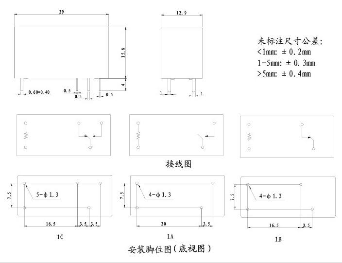 小型功率继电器,尺寸29*12.7*15.7,触点容量12A/250VAC,12A/30VDC,线圈功率0.45W。
